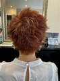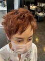 オレンジブラウン系にカラーチェンジ(ブリーチ歴あり)ベリーショートもアイロンスタイリングで少しだけゆるはね感ををプラスしてあげるとボーイッシュすぎない可愛いいお仕上がりになります