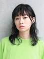 ほつれた糸のような散れる動きがアンニュイでこなれ感のあるパーマスタイル。あえて黒髪にする事でモードな印象に。フロントにはレイヤーを入れる事でデザインをプラスしアレンジも楽しく↑