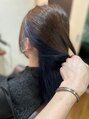 ブリーチ2回で、きれいなコバルトブルーのインナーカラーにしました。
