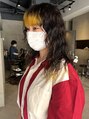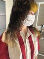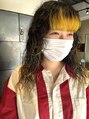 黄色がポイントのデザインカラー顔周りにレイヤーを入れてそこにもポイントのカラーを!くせ毛とデザインのバランスを見てカラーしていきます。