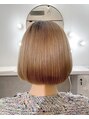 やや丸みを付けたボブスタイル。ブリーチ後、ベージュ系のカラーで透明感とツヤをプラスしました。くせ毛や赤味が出やすい髪質の場合、複数回ブリーチが必要です。