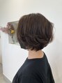 ショートのコテ巻きスタイルです。程よく明るめの髪色でカジュアルフェミニンな印象になります。