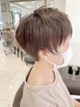 サイドを刈り上げてかぶせた、技ありの軽めショートヘア。首もとぎりぎりでカットし、えりあしをしめるようにしたメリハリのあるスタイルです。透明感のあるオリーブベージュが映える、爽やかなショートヘアはこの夏人気です!短くしたい方ご相談ください♪