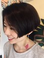 耳後ろ後頭部辺りを毛量調整し軽すぎないコンパクトショートボブに仕上げました