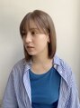透明感たっぷりのシアーベージュカラー。くすませすぎないベージュにする事で肌の色も綺麗に見えるヘルシーカラーです。ワンカールロブでツヤのあるナチュラルスタイル。