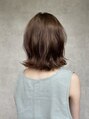 顔周りとシルエットはバランスに合わせて細かく似合わせを考えてカットしています。カラーは艶のある上品なブラウン、透明感とニュアンスを大事にした肌を綺麗に見える色に仕上げています。大人の清潔感と色気を大切に考えます。高橋玲子