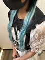 大人気ブルーラベンダーカラーの濃いめネイビーです!シールエクステは明るめで襟足につけて柔らかい印象もプラスしました!