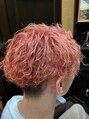 ピンクレッドカラー 刈り上げマッシュ コンマヘア