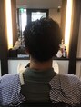 ツイストスパイラル緑ロッドでツイスト多め大きめの動きが出て自然な仕上がり横3ミリのツーブロックに後ろ6ミリで自然に繋いでます