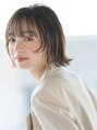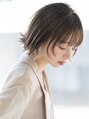 顔まわりのぷつっとレイヤーとイヤリングカラーがデザインポイントのこなれ感外ハネボブ。ほどよく軽さを出しながら切りっぱなしラインは残る毛先の質感でカジュアルな抜け感を。ベースカラーはまろやかに光が透けてほんのりくすむ透明感サンドベージュ。