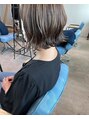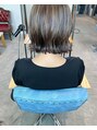 前下がりのあごラインボブスタイルです。表面に入れたハイライトがポイントになってオススメです。カラーはアッシュグレー系です。