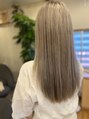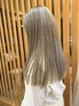 ブリーチあり、ハイライトベースでオンカラー。全体はシルバーベージュ。ハイライト部分はモーヴピンク。
