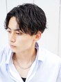 前髪とトップを少し軽めに設定したセンターパートスタイル!縦落ちのスパイラルパーマをかけてあげることにより大人っぽい印象に!スタイリングも艶系のワックスを使い色気もプラス!