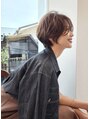ゆとりのある前下がりショートとシースルーバングを合わせたこなれ感あるスタイルです。頭の形が綺麗に見えるシルエットです。暗めカラーとの相性も良いです。