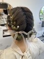 ボリュームは出したくない!とのことで、事前にインスタで、候補の髪型の写真をいただき相談の上、きちっと編み込みお団子に。キレイなカラーも目立って、とてもかわいかったです!飾りはおまかせで、いろいろ付けさせていただきました!