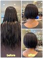 髪のご寄付のために3年ほど伸ばしてくださいました。バランス良く格好よくとオーダー頂きましたので前下がりのクールでカッコいい感じにさせて頂きました。とってもバランス良くなって喜んでいただけました。