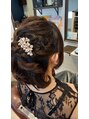 結婚式に出席するお客様のアレンジヘアです。アップスタイルが、多かったので、あえてダウンスタイルで表編みを合わせて大人な清楚なイメージにしてみました。