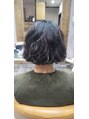わざと重さを残したラインがポイントに。カラーはベースを濃いBLUEとGRAYで暗く。元の明るさを生かしてハイライト風に残してダメージレスに。