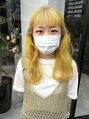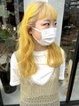 イエローベージュのルーツカラー。根本まで全頭ブリーチしています。ベージュとイエローの組み合わせがかわいいです!色落ちもブロンドに落ちるので、長く楽しめるカラーです!