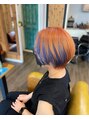 ダブルカラーはお任せ下さい!カットはハンサムショートベース!カラーはブリーチでしっかり脱色してからキャラメルオレンジをベースに^ ^インナーカラーはパープルとグリーンのインナーツートンカラー♪人と被らないインナーカラーです☆