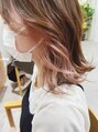 ピンクベージュのインナーカラー/外はねミディアムロブ/ホットペッパービューティー