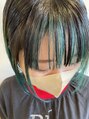 ほんのり青みがあるグリーンを毛先に!根元がくらいので派手すぎずのハデ髪☆