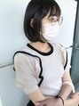 シンプルな肩上ボブは、ボリュームを見ながら髪質にあわせて毛量調節。前髪は、シースルーに仕上げ。カラーは、グレーベースの暗髪です。透明感があるので軽やかな印象に魅せてくれます。