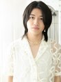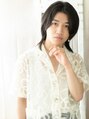 襟足を長めに残したミディアムウルフ。センターパートで長めバングをサイドに自然に流したアンニュイなスタイル。セミウェットにしたり、パーマをかけても◎