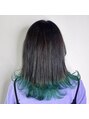 個性派さんにオススメな裾カラーです!ブリーチ1回でも可能なグリーン系のカラーで一気に個性的になれます^^!外ハネにスタイリングしてもストレートでも可愛い♪