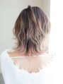 ラフな毛流れと、外ハネで動きをつけるのがいまっぽい肩下の長さのレイヤーボブとカーキベージュグラデーション。毛先をブリーチして明るくすることで他と被りにくいスタイルに☆根元はあえて地毛のまま残すのがポイント!