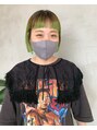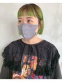 毛先のブリーチ部分にビビッドなライトグリーンを◎個性たっぷりで可愛いです!