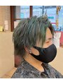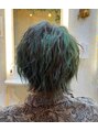 襟足を残したネオウルフカットに太めのメッシュを入れることで立体感を出しました!グリーンのメッシュで誰とも被らないおしゃれカラーに!