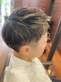 地毛の黒髪にブリーチでハイライト(メッシュ)で動きを出しました。なるべく黄色味や赤みが出ないように、しっかり時間を置いています。