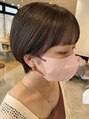 つるっとしたフォルムが可愛いショート。耳にかけた時の横顔が綺麗に見えるようにサイドバングを作っています。カラーは赤みのないマロンブラウン。柔らかく見えます。