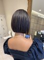 耳にかけても収まりのいいぱつっとミニボブヘア!細いハイライトを細かくたくさん入れて夏らしさup!色落ちは明るいベージュになるように選定してあります☆