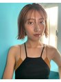 大人オレンジベージュに切りっぱなしボブ。オレンジにベージュを混ぜる事で大人っぽく、品よく暖色系を楽しめます!