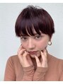 切りっぱなしの毛先と角を残したカットライン。直線的なラインと丸みのあるフォルムをミックスさせたショートヘア。もみあげを丸くカットすることで女性らしさがグッと引き立ちます。カラーは深みのあるボルドーで秋冬のmakeにもぴったりです。