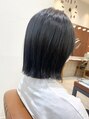 切りっぱなしボブ☆顔まわりのカットで流れをつくり小顔効果も!カラーは重くなりすぎない透明感のあるブルーグレージュです!