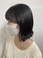 アゴ下での切りっぱなしボブです。重さを残し、扱いやすいようにしています。顔周りにレイヤーを入れることで、毛流れもできてかわいさもでます。