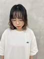 ミディアムのウルフパーマスタイルサイドのぱつっと切ったデザインがポイントのウルフスタイルは重めにぱつっとラインでカットしつつ動きを出して重くなりすぎないようにしてます。