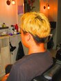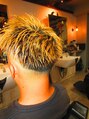 2ブロックスタイルのすそ周りは、フェードカットにしました。※金髪へのカラーは、しておりません。
