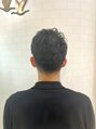 ツーブロックにバックまで刈り上げたショートパーマスタイル。パーマをかけることで格段にスタイリングし易くなります!ビジネススタイルにもOK!休日には前髪を下ろしてスタイリングできますよ!(^^)/