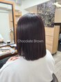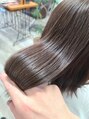 アイロンで外ハネさせたミディアムボブ。カラーはモカベージュで程よい透明感をプラス。アイロンは波打ちするように入れると可愛いです☆
