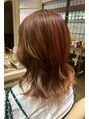 ローレイヤーのくびれスタイルにブリーチをしてから色を被せています!!ブリーチをする事でより鮮やかに色がでるので可愛い◎赤み系のカラーだと髪のツヤもでてオススメ!!