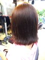大人雰囲気切りっぱなしボブスタイル。頭皮が過敏でヘアカラーで刺激を感じる方はノンジアミンカラーや香草カラー等低刺激カラーがございます。年齢問わず新規のお客様大歓迎♪ふんわり大人かわいいヘア!小顔カット、絶壁解消、あなたのお悩みを解消します。