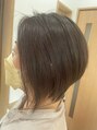 大人っぽく前下がりの襟足軽めショートです。カラーはヴィラロドラのラベンダーアッシュにモノトーンを加えて落ち着いてるけどおしゃれな感じになりました