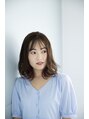 肩下の長さに毛先を切りっぱなしになるようにカット後、ランダムにパーマをかけます。