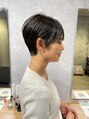 透明感艶カラーショートスタイル耳にかけれる、ハンサムショートスタイルです。全体をレベル10のベージュでトーンをやや明るく見せています。