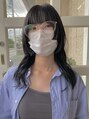 頬、顎ラインにパツッと段差を入れたデザインウルフ、黒髪にしてモードっぽく。
