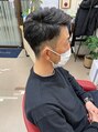 クセを活かした刈り上げスタイルです。セットしやすいように生え癖を考慮し、ややアシンメトリーなカットになってます!